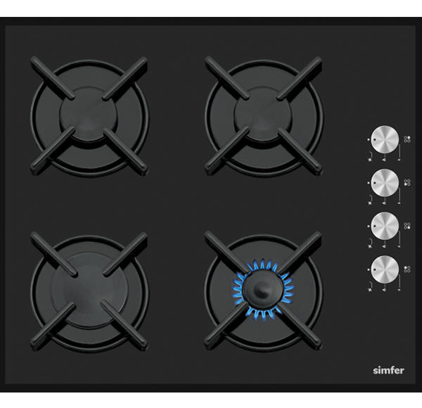Vgradna plinska kuhalna plošča Simfer 6400 KGSSP se pohvali s 4 plinskimi kuhalnimi površinami, ki se nahajajo na črni stekleni površini. Emajlirani nosilci, upravljanje z desne strani, elektronski vžig plina in varnostni ventili poskrbijo za udobno in varno pripravo jedi. Kuhalne površine so primerne za kuhanje s pomočjo zemeljskega plina ali jeklenke. Serijsko so nameščene šobe za jeklenko, za zemeljski plin pa so priložene. Gumbi v barvi inoxa se lepo dopolnjujejo z dizajnom črnega steklenega stekla in se podajo prav vsaki moderni kuhinji.