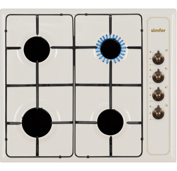 Vgradna plinska kuhalna plošča Simfer 6400 QGRBJ se pohvali s 4 plinskimi kuhalnimi površinami, bež emajlirano površino in rustikalnimi gumbi, ki ji dodajo prijeten retro izgled. Emajlirani nosilci posode, upravljanje z desne strani, elektronski vžig plina in varnostni ventili poskrbijo za udobno in varno pripravo jedi. Kuhalne površine so primerne za kuhanje s pomočjo zemeljskega plina ali jeklenke. Serijsko so nameščene šobe za jeklenko, za zemeljski plin pa so priložene. Njen rustikalen dizajn se poda v vsako retro kuhinjo.